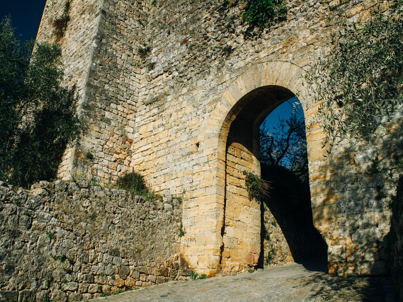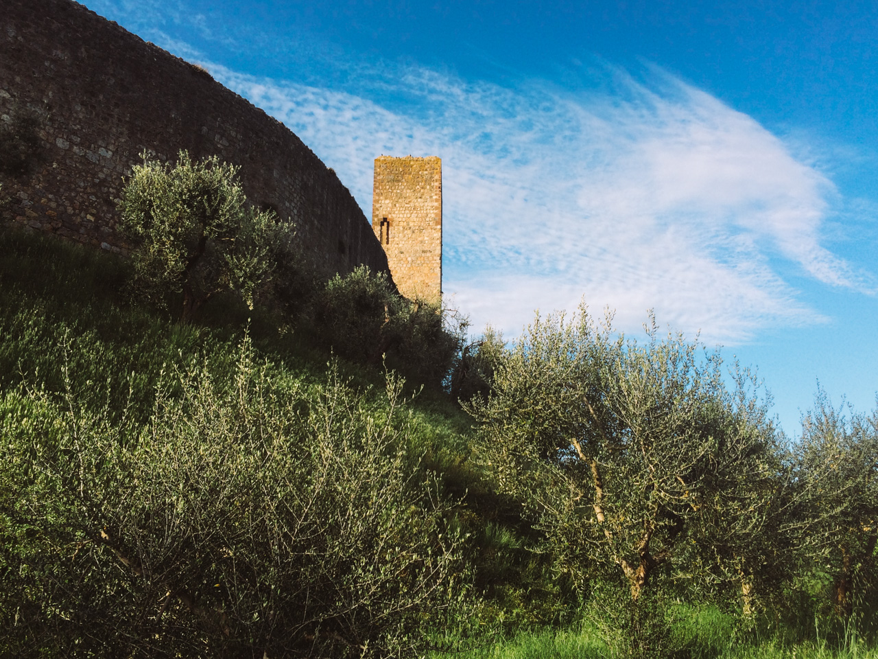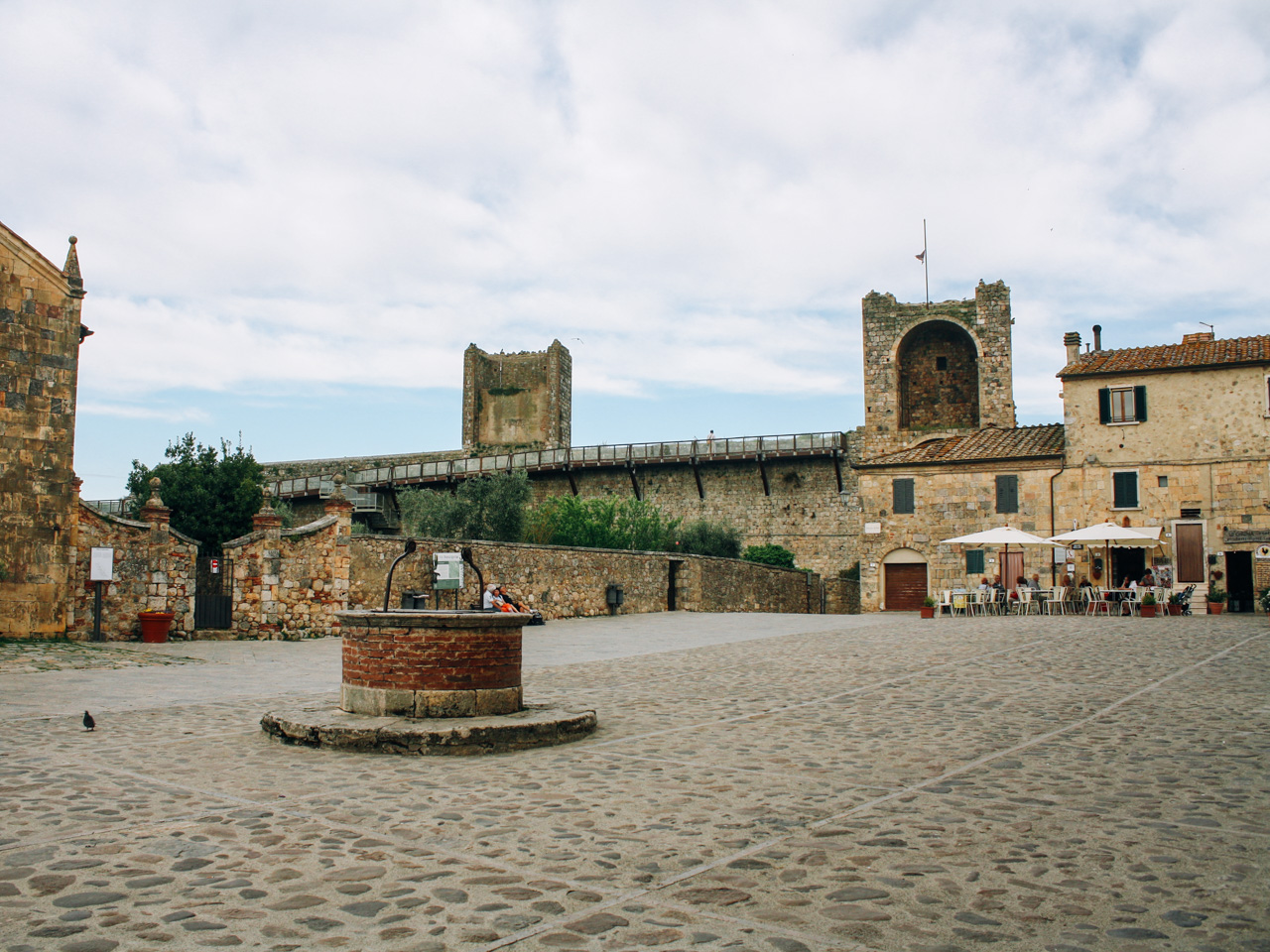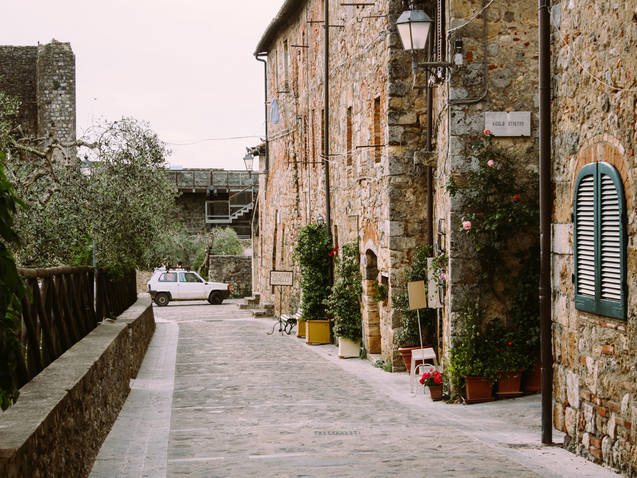 Tudo em Monteriggioni é muito conservado e já ao chegar perto das muralhas é possível sentir o clima medieval que cerca o entorno. Ao todo são 14 torres de pedra e duas portas de entrada que fizeram dela uma fortaleza de grande importância na época dos ataques florentinos. A área dentro das muralhas é muito pequena, então não foi necessário muito tempo pra conhecer cada canto da fortaleza.