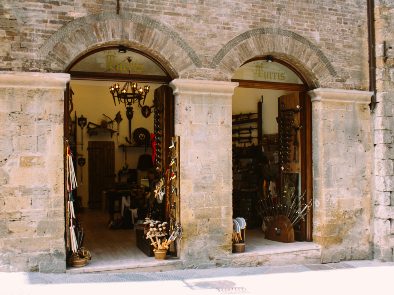 No local existem muito poucos comércios e todos são voltados para o turismo, então lá é possível comer e comprar vinhos, azeites, peças de decoração e outros itens pra guardar de lembrança.